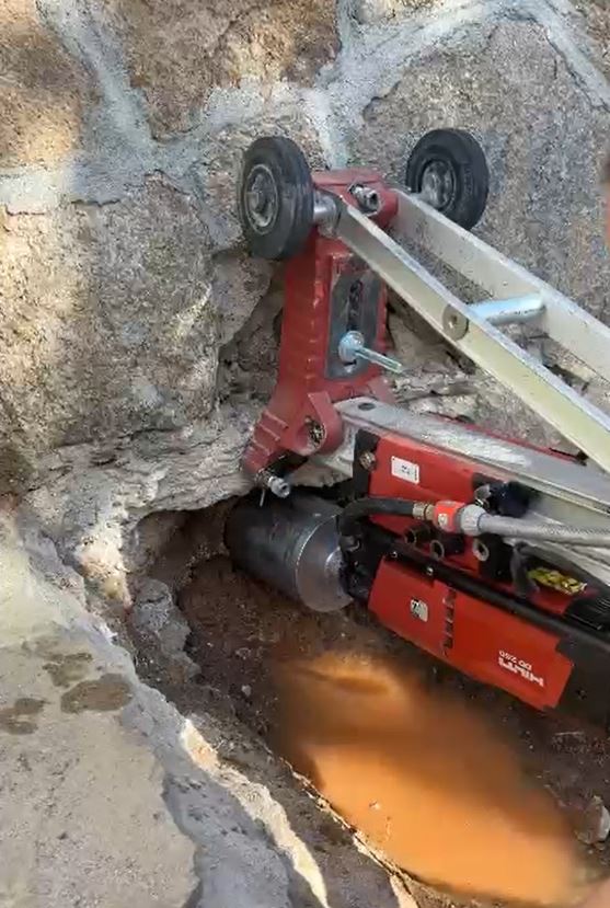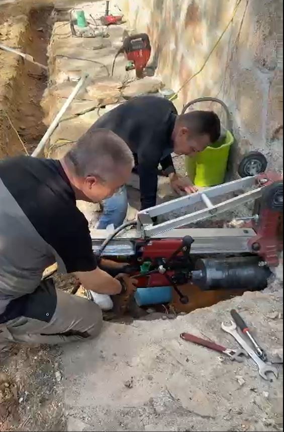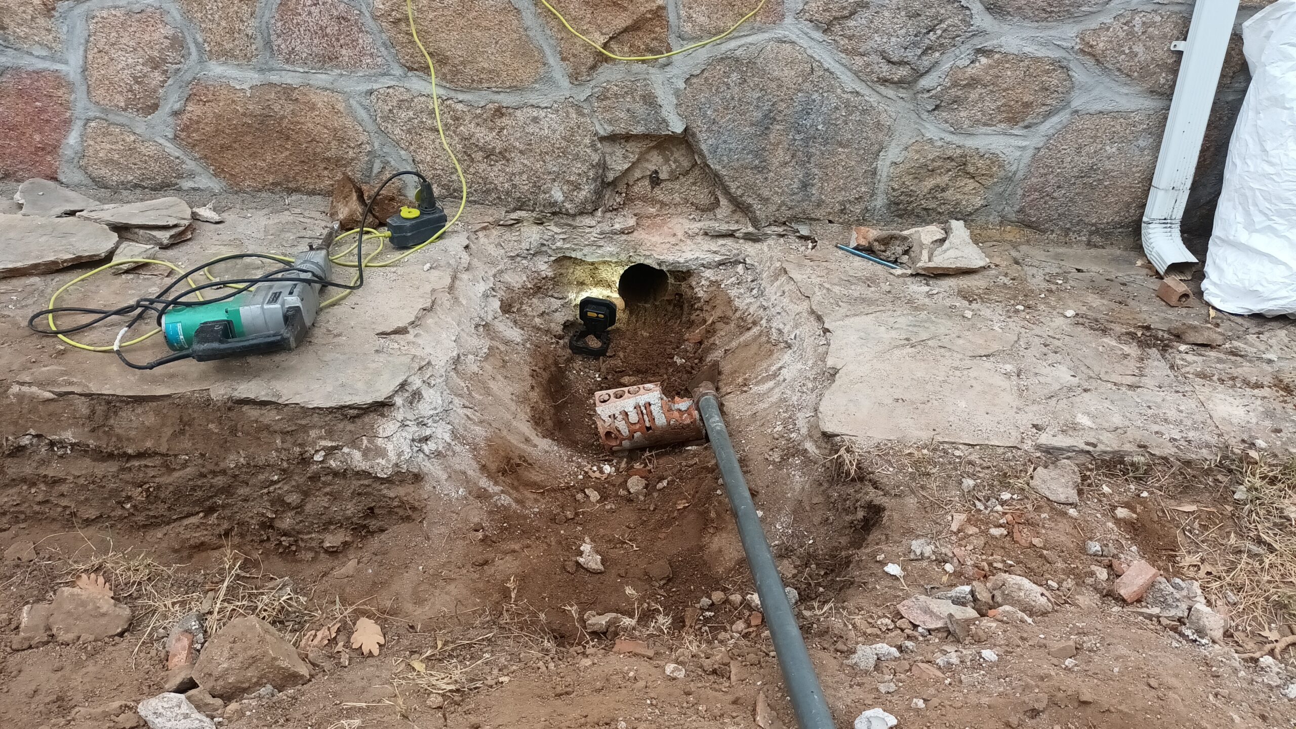 Tras las pruebas diagnósticas de búsqueda de fuentes de radón y permeabilidad del terreno se definieron los puntos más adecuados para actuar. La intervención consistió en realizar una excavación exterior y dos perforaciones en la fachada lateral del edificio para acceder al subsuelo por debajo de la losa de cimentación. Se instalaron dos tubos de captación que se conectaron a un sistema de depresión del terreno, diseñado para extraer el gas radón antes de que penetrara en el interior.